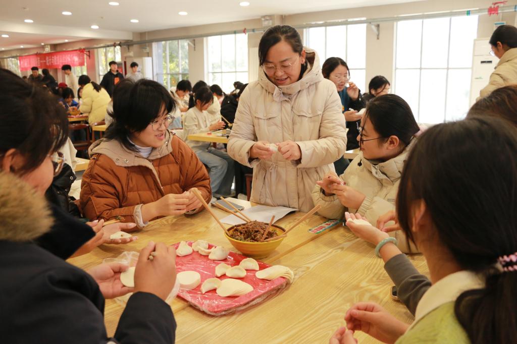 最后,一盘盘热气腾腾的饺子端上桌,同学们围坐在一起,品尝亲手包制的饺子,共享劳动成果。此次活动不仅让同学们亲身感受了冬至传统习俗的魅力,更在实践互动中增进了彼此的交流与友谊。