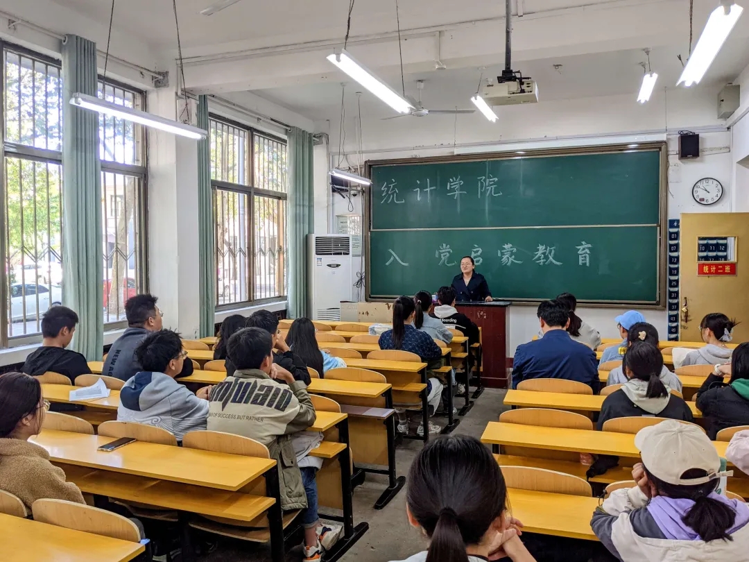 楼107教室对部分志愿加入中国共产党的同学开展入党启蒙教育。本次主题教育班会由统计正妹