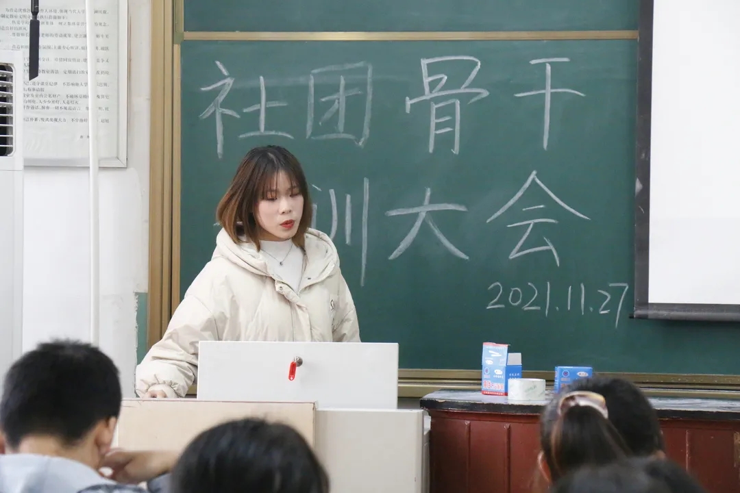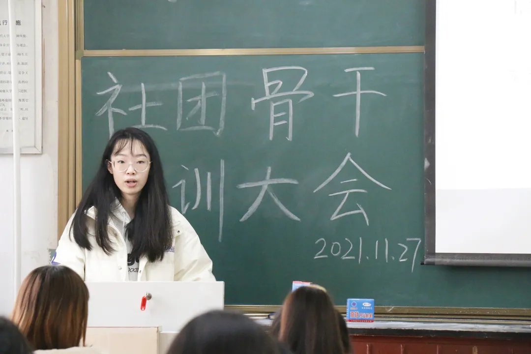 于院楼111教室召开了以“培养骨干队伍,争当优秀先锋”为主题的社团骨干培训大会。本次会议由统计正妹