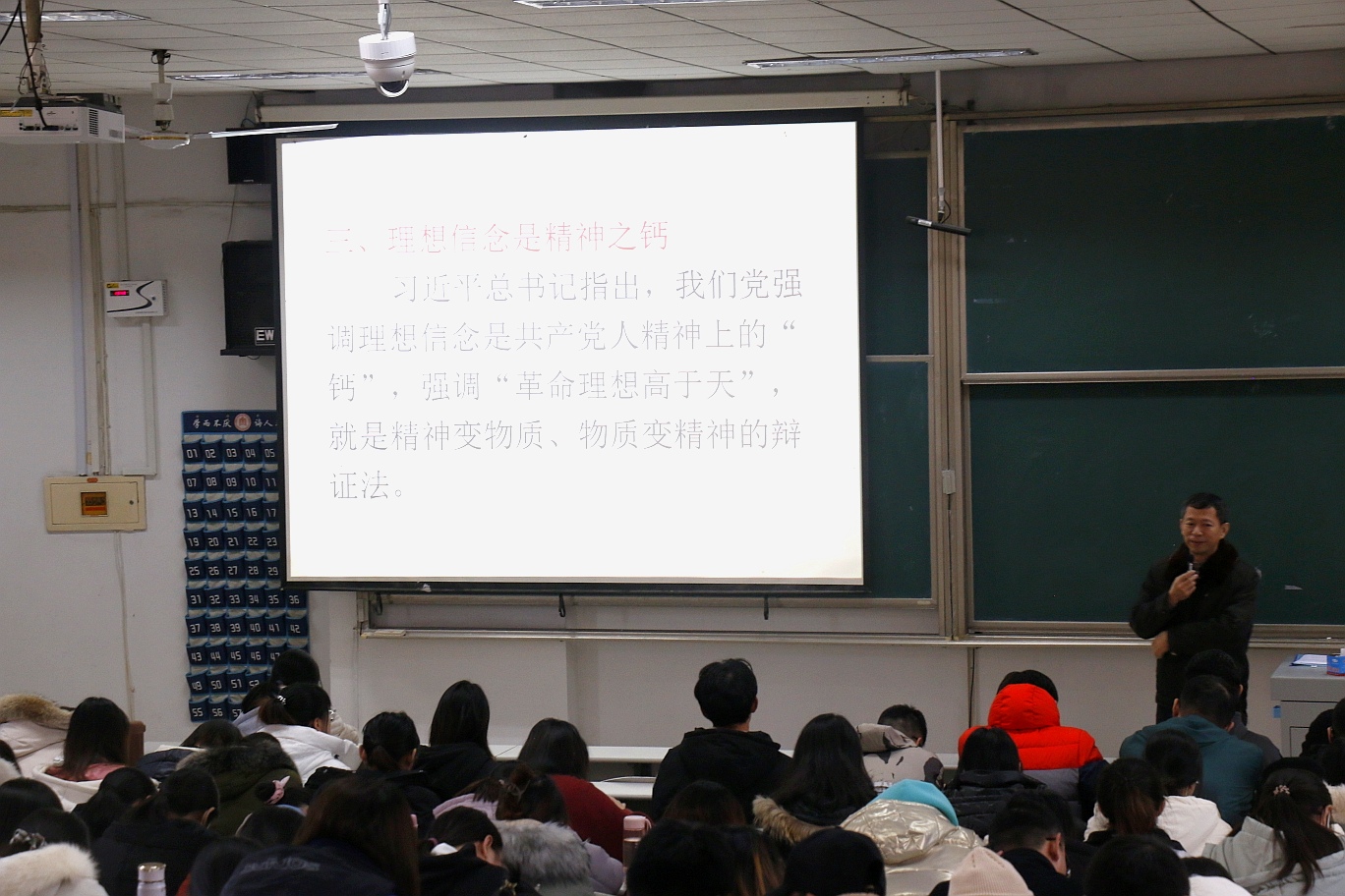 (通讯员:姬诚 周文清)为深入学习《中共中央关于党的百年奋斗重大成就和历史经验的决议》,认真学习贯彻十九届六中全会的精神,增强同学们的民族自豪感,赵胜利院长于12月1日下午2:00在综合楼206室为2018级同学讲授形势政策课,正妹