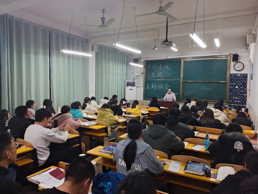 2021级各班教室召开法律法规意识主题班会。本次班会由2021级辅导员李宴美老师主持,2021级全体学生参加。