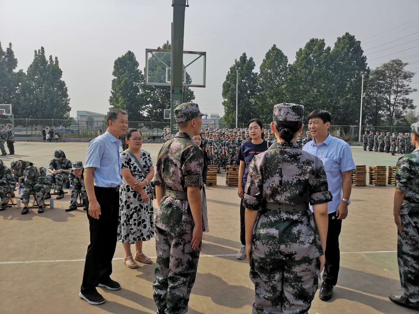 党委书记刘明海、党委副书记季中、团委书记李宴美、18级辅导员张风姣、20级辅导员张庆伟,到西操场查看2020级新生军训情况,关注新生身体问题,询问教官新生表现情况。教官现场指导新生摆放马扎、水杯,练习站军姿,正妹