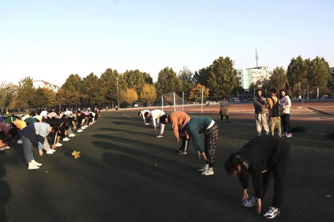 学子在进行体育锻炼。同学们积极参加冬训展现了统计正妹