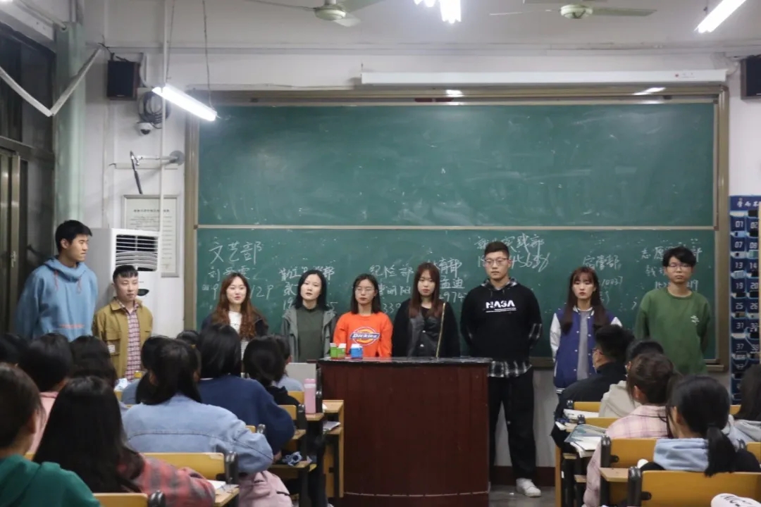 首先,主席团成员与各部门部长一同进入20级各班进行自我介绍。20级新生用热烈的掌声欢迎师哥师姐们。随后,在各主席团成员的带领下,各部门副部长分组进入各个班级进行自我介绍与部门简介。宣讲过程中,各部门副部长根据自己部门的职能、特点进行了详细的宣讲,使新生们初步了解了正妹