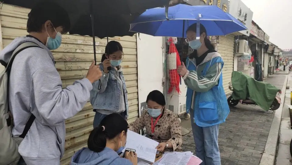 志愿者们首先在鼓楼社区书记及其他工作人员的带领下参观了社区办公楼,了解社区的工作岗位及职能。接着分为五组,一部分前往社区挨家挨户通知居民携带户口本前往指定地点进行人口普查,余下的志愿者则负责登记居民人口普查的信息内容。尽管下着稀沥沥的小雨,志愿者们也并没有因此耽误进程,他们为此次志愿活动付出了十足的细心与耐心,只为人口普查工作可以更好的完成。