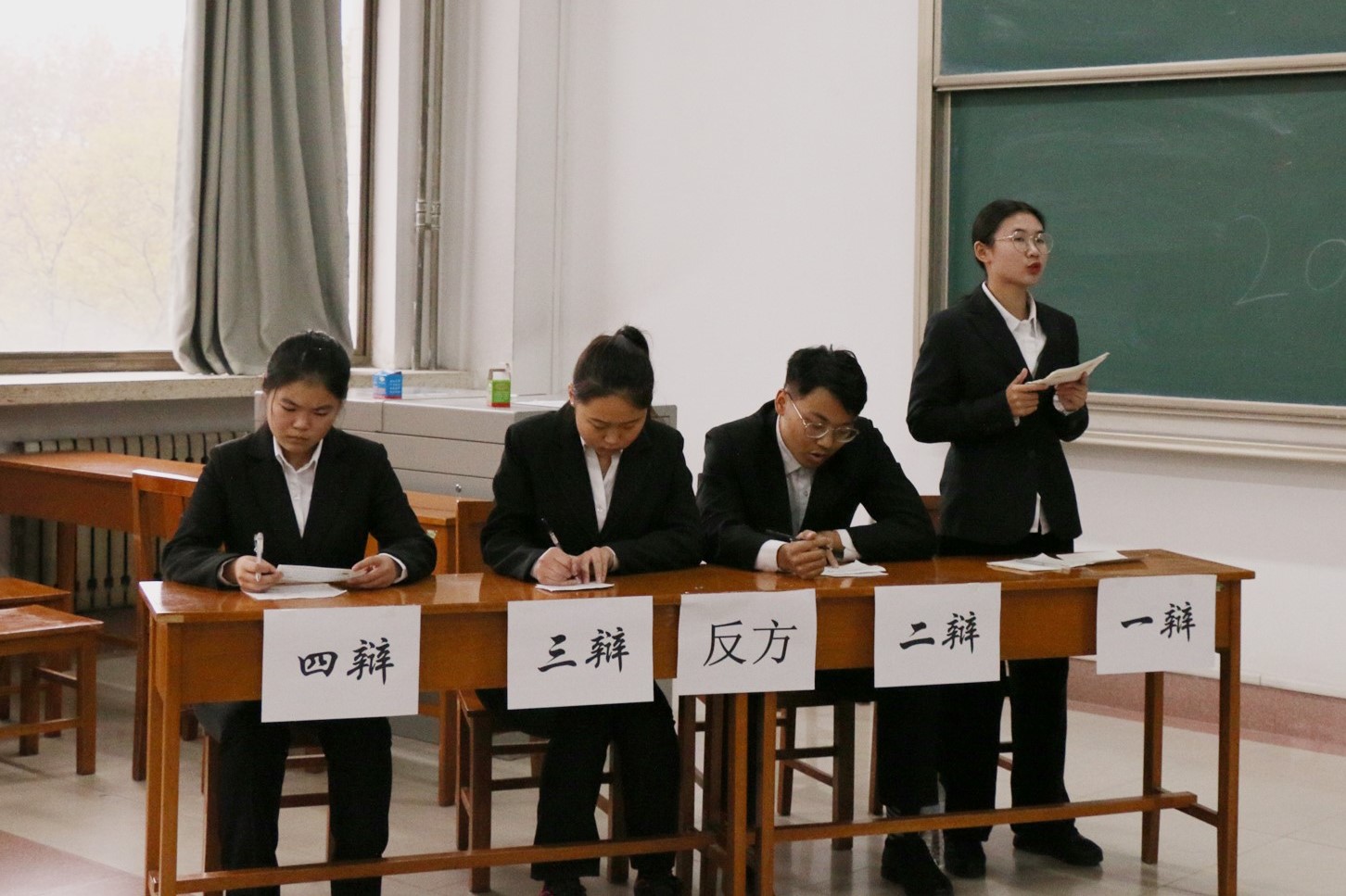 学习部与办公室承办的辩论赛分别在综合楼303、305教室拉开帷幕。本次辩论赛荣幸邀请到张欣、张昊、李克欣、许杨、张桂敏、张欣等优秀学生担任评委。
