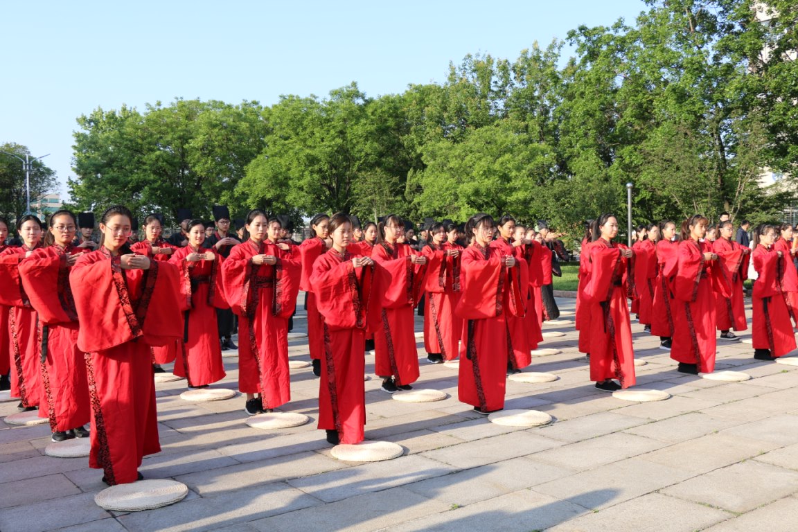 在孔子文化广场举办升旗仪式和五四成人礼活动。