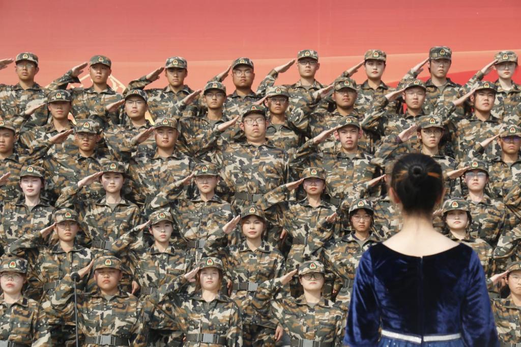 (通讯员:周仁杰)为弘扬爱国主义精神,以实际行动迎接二十大胜利召开,丰富2022级新生军训生活,培养学生集体主义精神,正妹