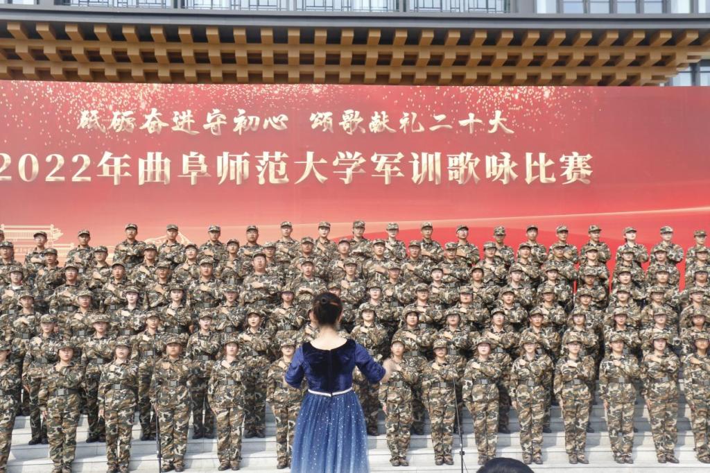 于10月15日下午一点,在曲阜西校区图书馆前广场举行“砥砺奋进守初心,颂歌献礼二十大”军训歌咏比赛,正妹