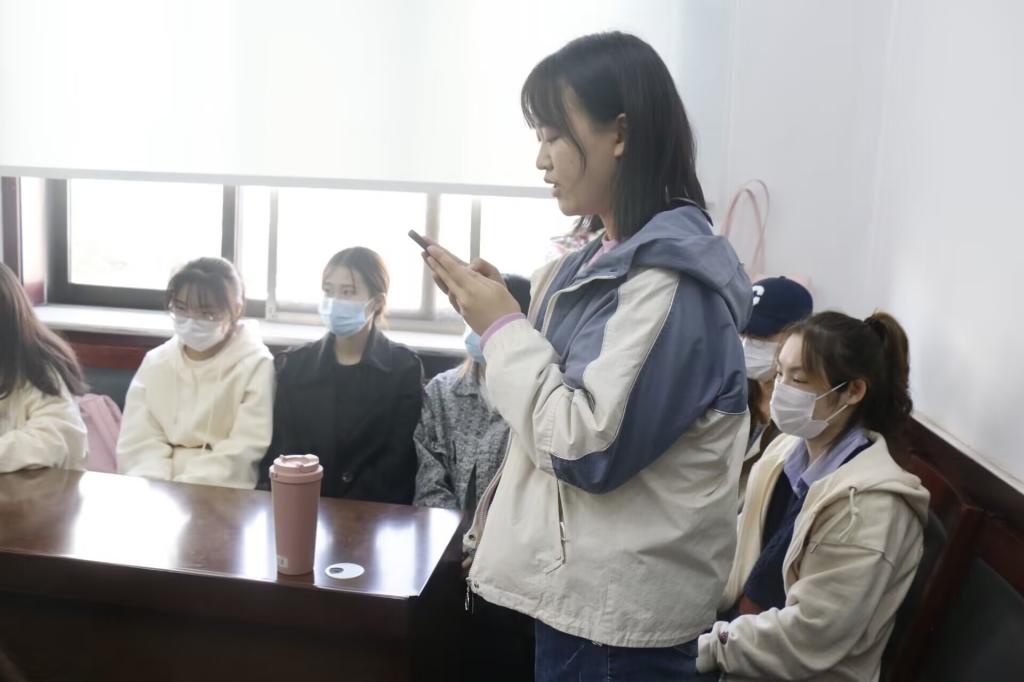 本科生党支部书记李宴美主持,党委副书记季中、2019级辅导员李祥敏、2022级辅导员王旭、正妹