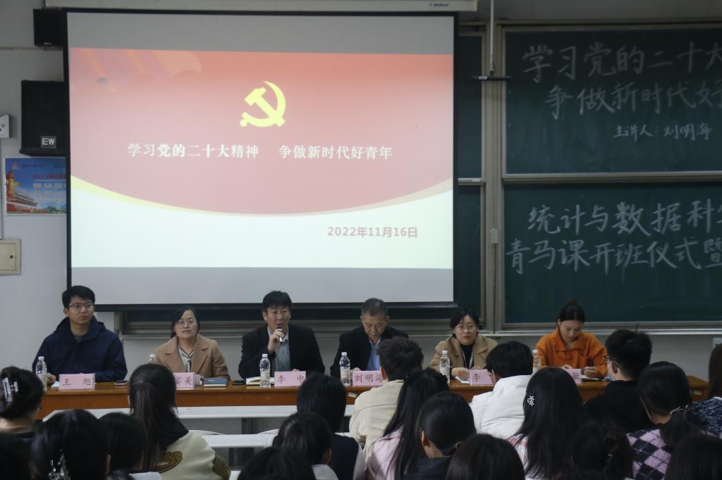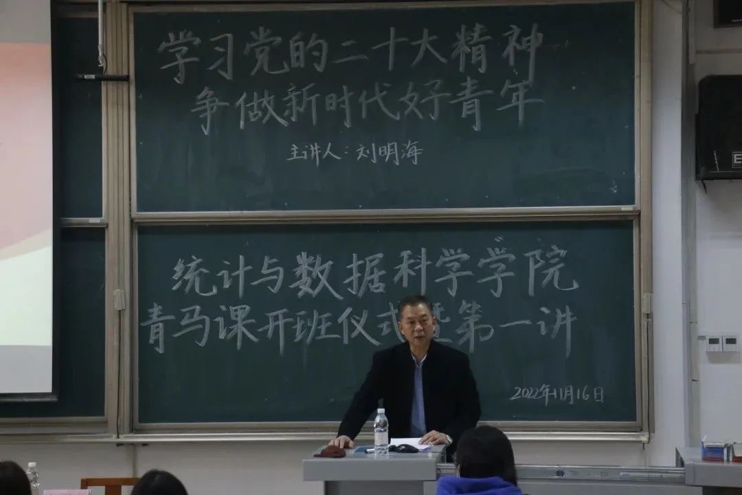 党委书记刘明海以“学习党的二十大精神 争做新时代好青年”为主题为学生骨干开启“青马工程”第一课。刘明海书记对正妹