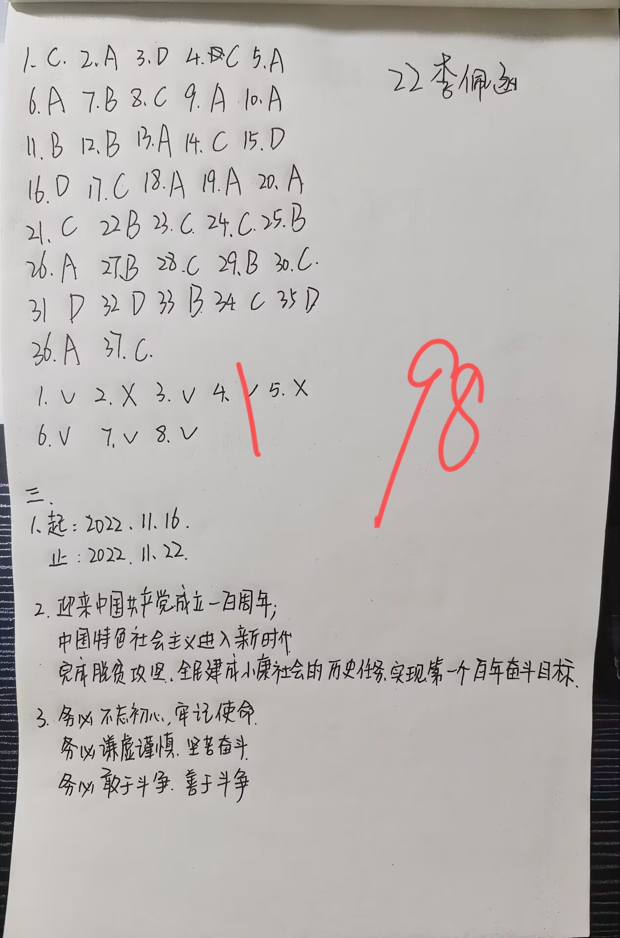 本次竞赛主要以党的二十大报告的主要内容,重点围绕党的二十大报告中的新观点、新论断、新思想等相关知识展开,题目设置选择题、判断题、简答题三类题型。比赛过程中,同学们神采奕奕,自信昂扬,以扎实的理论基础、流畅的问题作答展现了学习党的二十大精神成果。活动结束后,组织部评委团本着“公平、公开、公正”的原则,最终评选出一等奖6名,二等奖17名,三等奖19名。