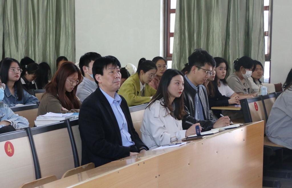 邀请学校党委宣传部李文振老师进行授课,2022级辅导员王旭主持本次会议,正妹