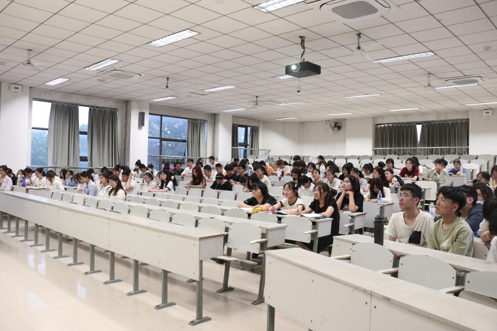 王少新老师从市调大赛的主题、研究目标、研究方案的设计与实施等方面为同学们进行讲解,他建议同学们现在可以提前了解相关的竞赛,努力学习竞赛需要的专业知识。杨瑞等同学从个人经历出发讲述比赛过程中可能会出现的问题,并提出解决方法,向同学们传递了不畏难,不惧难的精神。流程最后,同学们积极提出问题,严德兴等同学针对疑问进行详细解答。