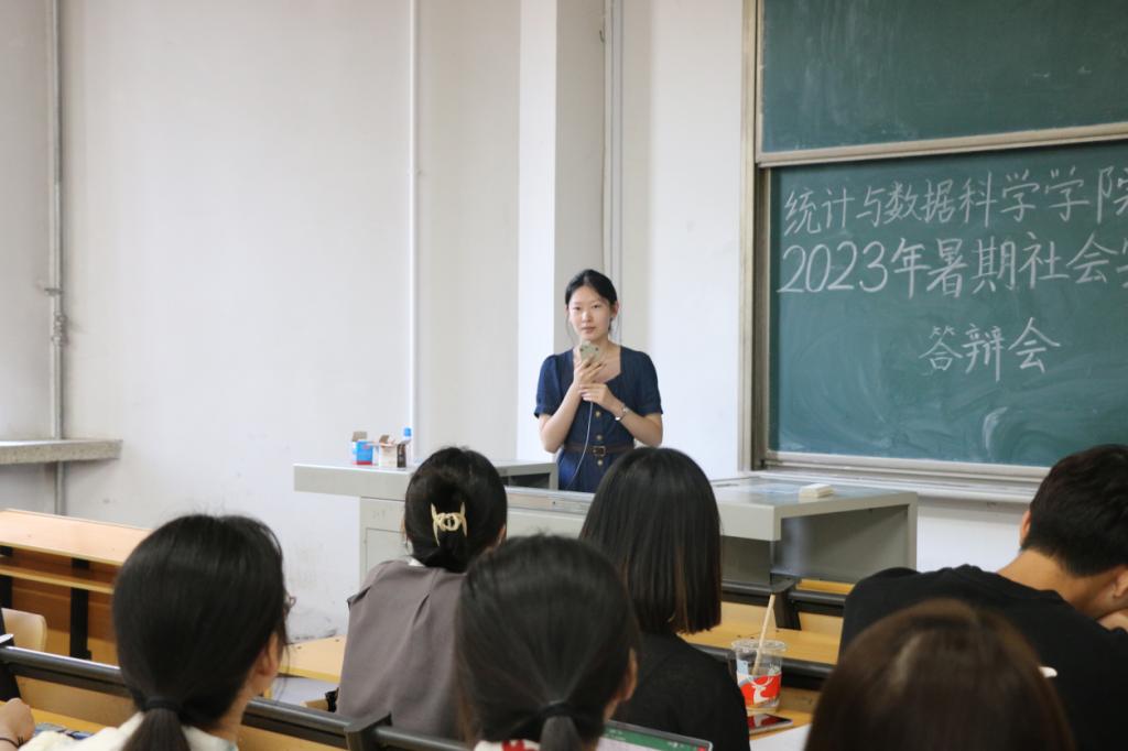 此次答辩由答辩展示和评委提问两部分组成。活动伊始,主持人介绍此次暑期社会实践的基本情况和答辩的相关规则。随后,答辩会正式开始,参加答辩的九支团队选题丰富多样,各实践队伍分别从实践主题、实践内容、实践成果和实践心得等方面积极展示自身队伍的特色和亮点。