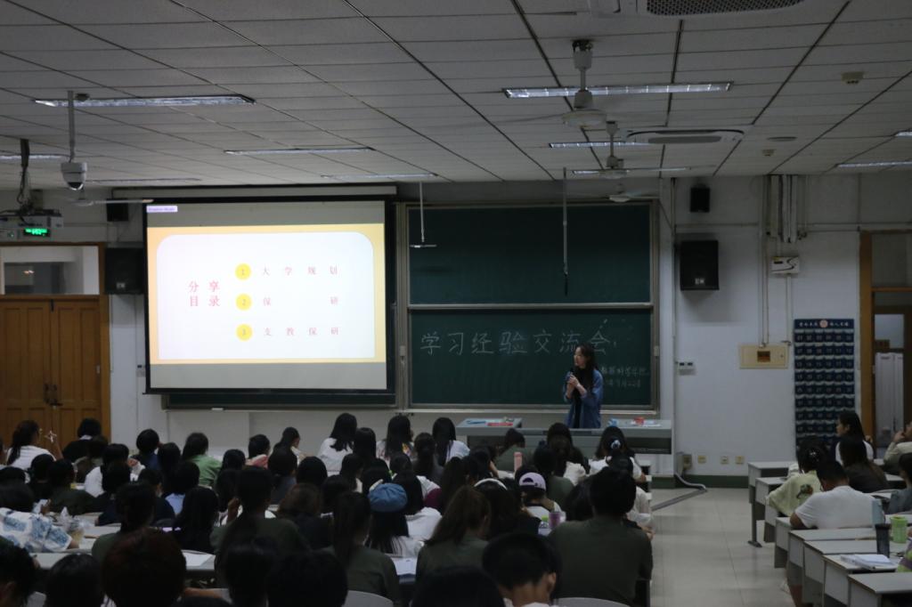 会议伊始,主持人致开场白,宣布本次经验交流会开始。接着,各级优秀师姐分享自己的学习经验,分别从学习方法、学习心态的调节等不同方面进行分享。最后,同学们积极进行互动,师姐们针对在场同学的提问进行解答,本次学习经验交流会圆满结束。