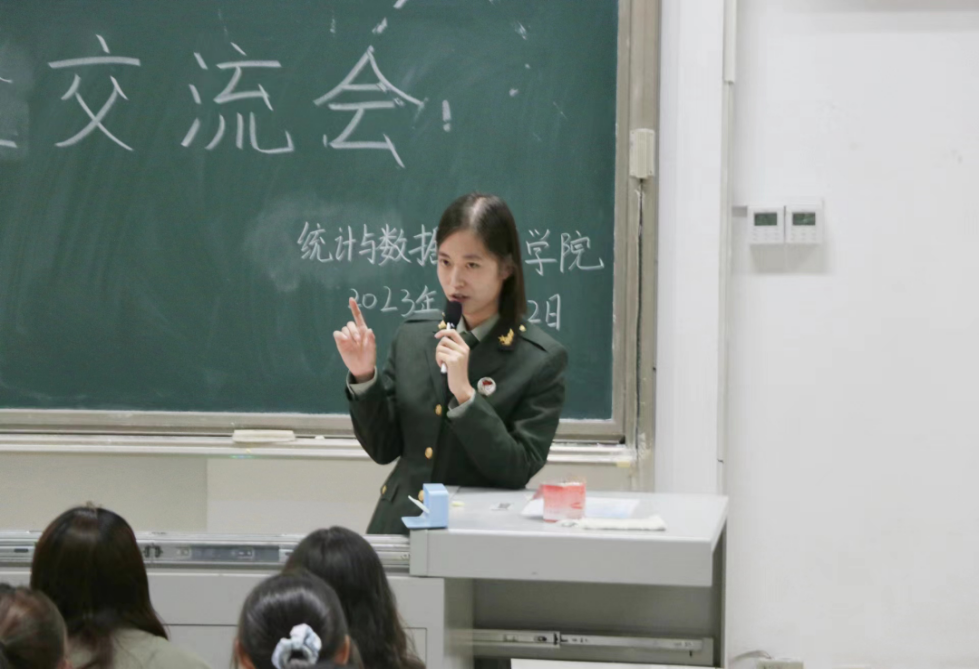在此次入伍宣讲中王丹丹师姐分享个人经验,宣讲入伍征兵政策法规,介绍大学生入伍优待政策,如保留入学资格、国家资助学费、升学优惠等,强调大学生在入伍后能够安心建功立业,退役后能够重返校园用功读书,消除了同学们的后顾之忧。最后,王丹丹师姐还针对在场同学的提问进行了答疑。此次入伍宣传向同学们展现了参军入伍对大学生在家国情怀、人格塑造等诸多方面的积极影响。