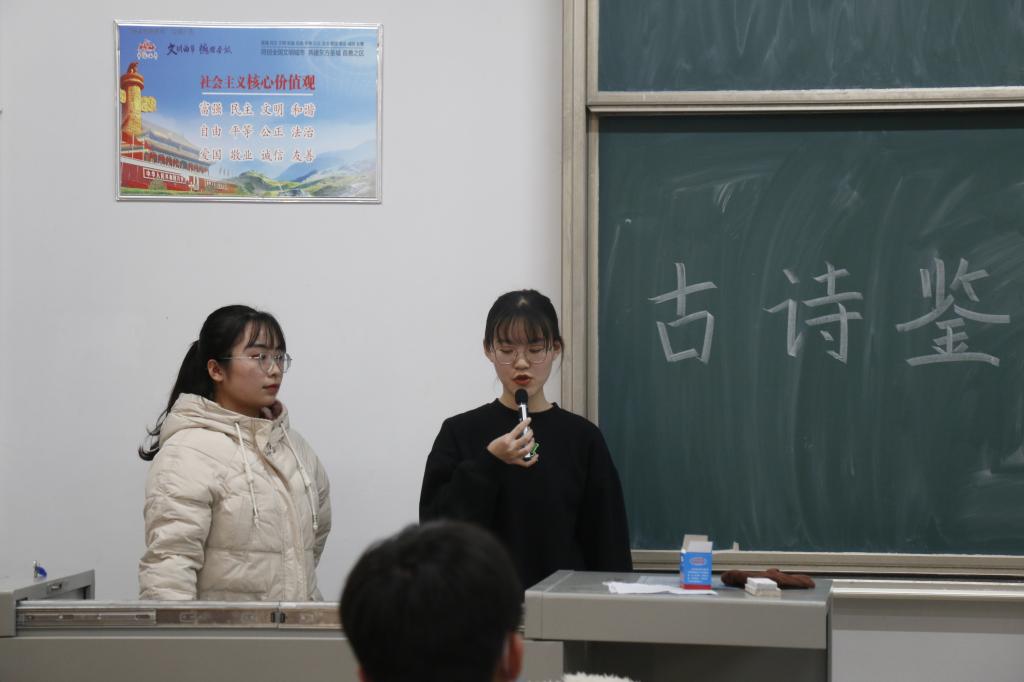 于11月4日下午2:30在综合楼203开展“以诗会友,以词传情”诗词鉴赏大会,各年级学生代表参加本次活动。