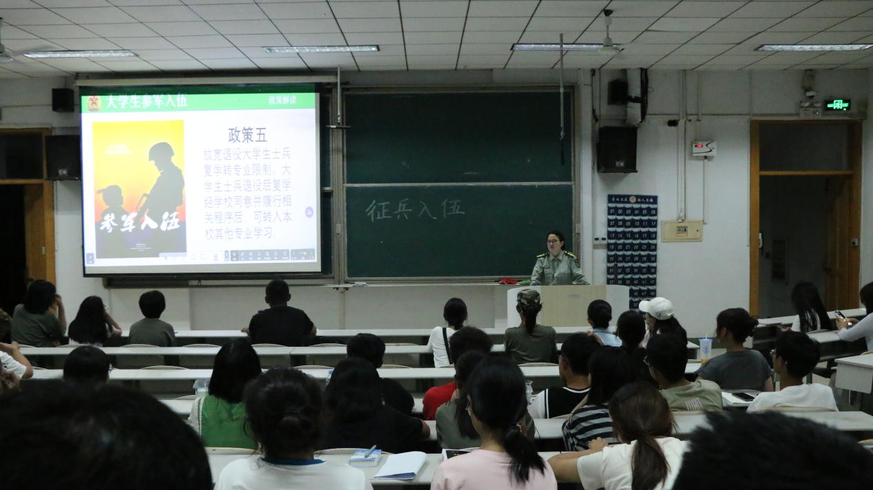 于9月8日19:30在综合楼501开展征兵入伍政策宣传。本次会议由2024级辅导员李文静主持,全体2024级新生参与。