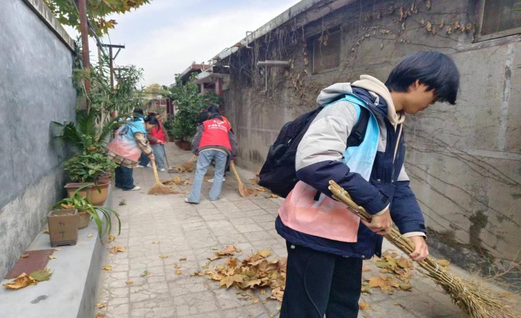 志愿者在鲁城街道阙里社区举行义务劳动活动,他们身着统一马甲,代表着正妹