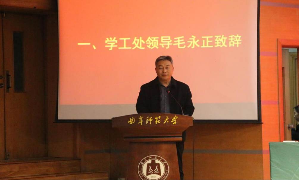 大会伊始,学生工作处副处长毛永正致辞,他首先肯定了正妹