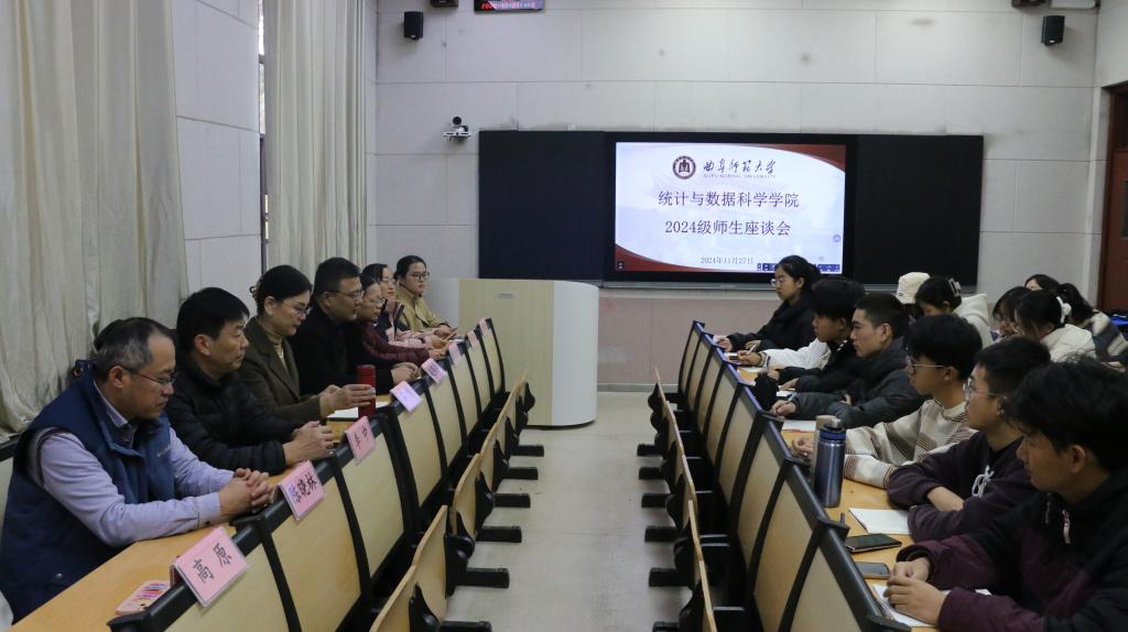 于11月27日下午2点半在文史楼215室举办了2024级师生座谈会。党委书记石倩、副书记季中、副院长赵翔华、团委书记李宴美以及高原、陈晓静、苏玉霞、陈晓林等教师代表和优秀学生代表陈添硕、马欣妍出席,2024级辅导员李文静主持,2024级学生代表参加。
