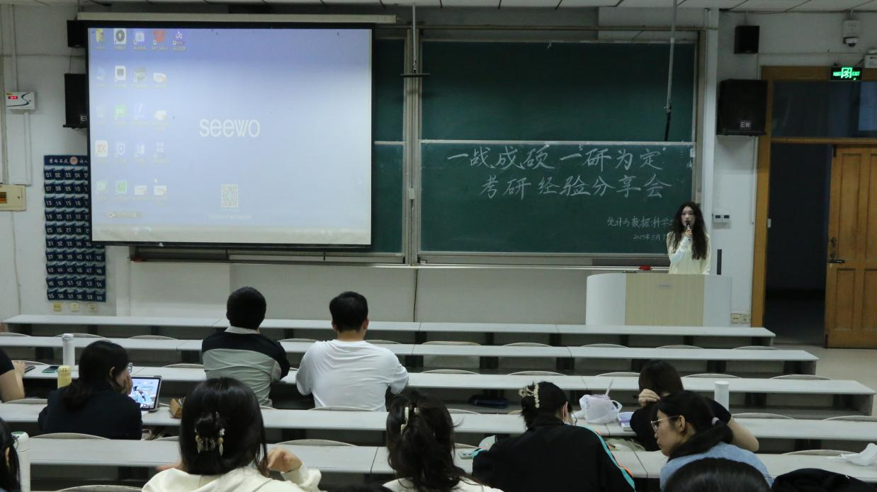 于5月7日晚在综合楼206室举办了“一战成硕,一研为定”考研经验分享会。本次分享会由2021级的吴泽宇、周文琪、周灯、陶名杰、陈珺同学主讲,2022级全体学生、2023级部分学生参加本次活动。