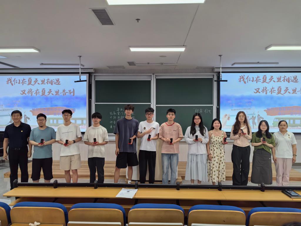 2025 届毕业生班会在致知楼102温情启幕。本次班会以“青春不散场,未来皆可期”为主题,特别设置毕业生视频播放、参军入伍宣讲、校徽与毕业礼物印章赠送、辅导员李宴美毕业寄语、党委副书记季中毕业祝福等环节,为毕业生们送上充满仪式感的毕业礼。