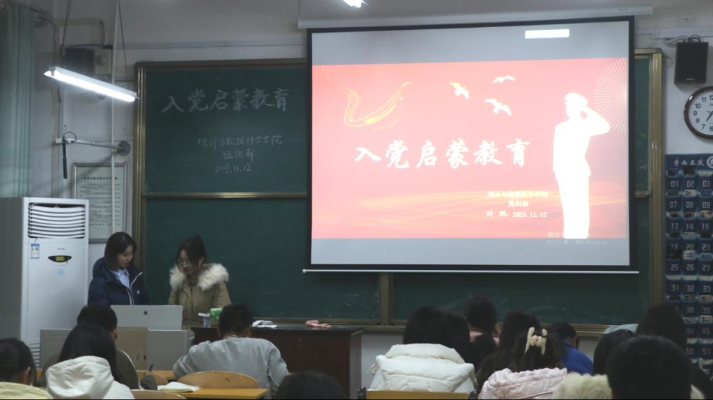 固定教室103、107、111开展入党启蒙教育宣讲会。本次会议由本科生党支部组织委员李宴美组织,组织部部长韩雨彤、王亚男主持,2023级全体学生参加。