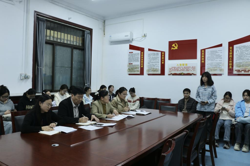 106会议室顺利召开。第一党支部书记李宴美、副书记李祥敏出席会议,本科生第一党支部全体党员及预备党员参加会议。