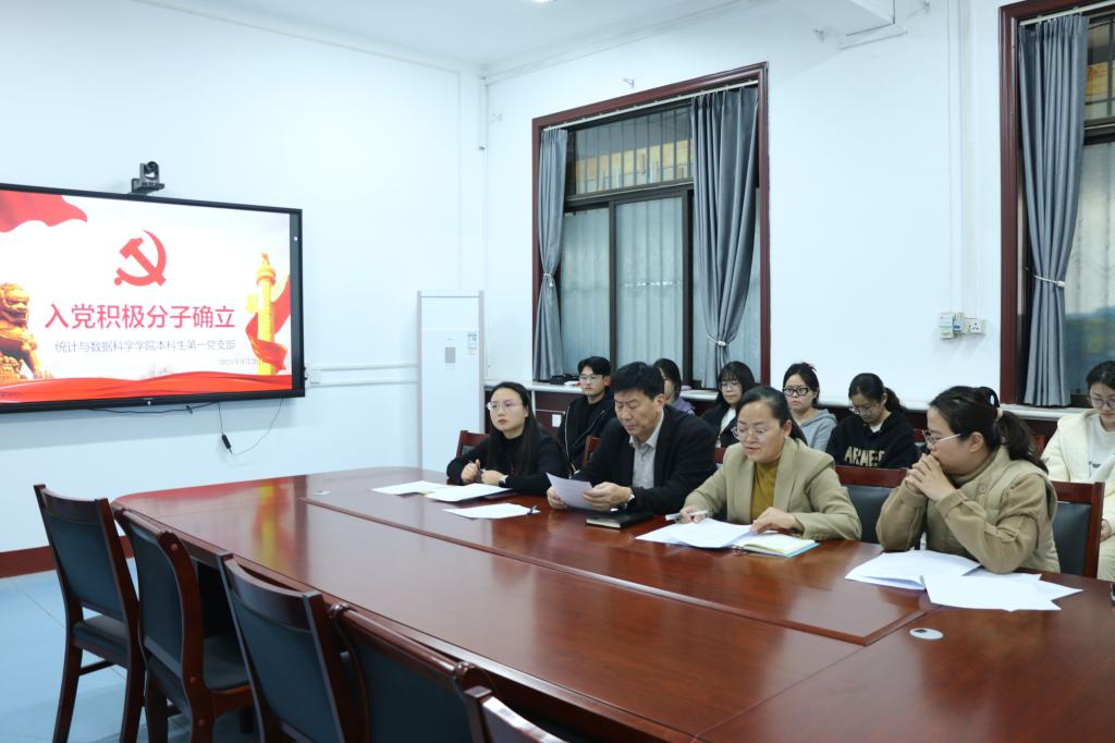 106会议室召开2025年第二批入党积极分子确立大会,本科生第一党支部书记李宴美、副书记李祥敏出席此次会议,第一党支部全体党员及预备党员参加会议。会议由李宴美主持。