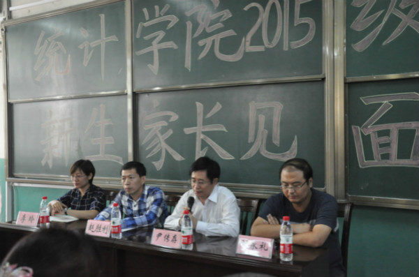 在人才培养、师资队伍、本科教育及学风建设等方面的优势。赵院长在随后的发言中介绍了统计学的就业方向,并就怎么样学好这一学科与新生和家长交流了自己的心得体会。会议最后,新生辅导员李玲老师在学习压力、综合发展、安全问题及社团活动方面进行了说明,并向新生及家长们表达了美好的祝愿。