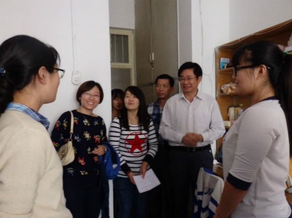 院长尹传存、副院长赵胜利、15级新生辅导员李玲以及部分学生会成员走访了统计正妹