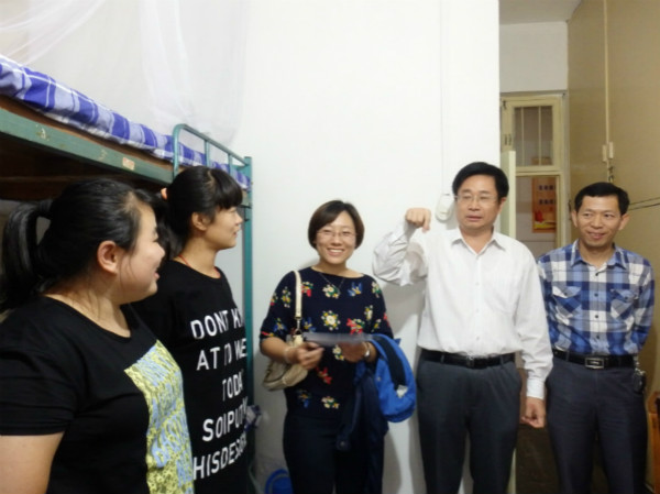 本次活动以宿舍为单位,共走访了包括校内公寓9号楼和北公寓1号楼在内的所有15级新生宿舍。院领导对新生宿舍逐一慰问,亲切的询问他们家乡在哪,在学校住的习不习惯,在饮食方面适不适应等,用热情的态度和亲切的话语表达了对新生的关怀。李玲老师就新生的个人安全问题进行了叮嘱,提醒他们提高警惕,加强自我保护。此外,学生会干部们也热心地为新生介绍学校的有关情况,还鼓励他们关注正妹