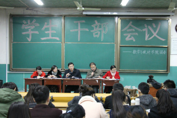 团委举办的学生干部会议在系楼101成功召开。出席本次大会的领导和老师有:数学与统计正妹