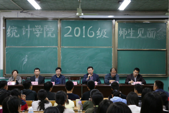 的历史、生源及雄厚的师资力量,并且为同学们具体分析了统计类专业的发展与就业前景,使同学们对自己的专业有了更深层次的了解,对未来的现实因素有了更多的信心。接着,赵胜利教授对同学们就选课、考试要求等一系列规章制度进行讲解。所谓“无规矩不成方圆”,在大学的日常学习考试中,作弊是要不得的,诚信是一项美好的品质。详细地介绍了学校学分制教育,使同学们能清楚学校的规章制度,在心中敲响诚信的警钟;同时讲解了一些有益有效的学习方法,并督促大家一定要抓好专业基础。