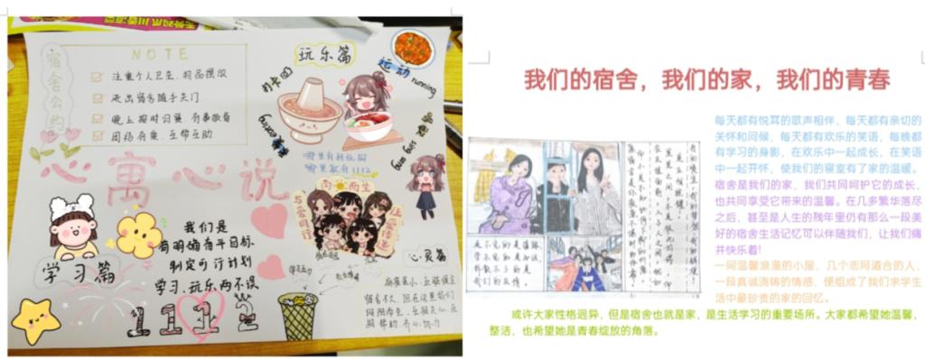 活动过程中,参与者积极参与,发散思维,勇于创新,用画笔“定格时光”,以饱满的热情和独特的视角,创作出一幅幅生动形象的绘画作品。以插画和简单故事的形式,记录宿舍生活的美好瞬间。这些作品描绘了宿舍内的欢声笑语,展现了宿舍的静谧温馨,将一幅幅青春的画面定格在画布上。最后,宿管部成员选出一二三等奖,此次活动圆满结束,大家收获满满。