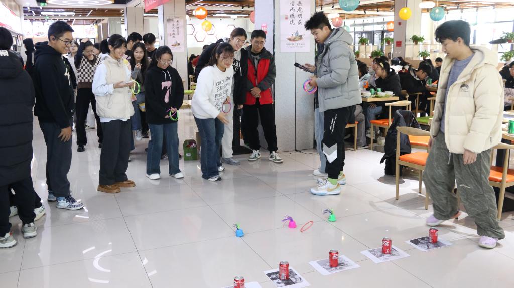 活动开始,同学们和老师们分工明确、有条不紊,揉面、擀皮、包馅,各司其职。大家手法娴熟,包出的饺子或捏褶精美,或敦实饱满,形态各异的饺子摆满了餐盘,“最美饺子”环节更是将气氛推向高潮。在包饺子过程中,同学们互相帮助,增进了彼此的了解与默契。饺子煮熟后,大家一起品尝劳动成果,分享冬至的喜悦。活动现场还设置了趣味套圈游戏,小礼品吸引众多同学踊跃参与,现场气氛热闹非凡,为活动增添了更多乐趣。