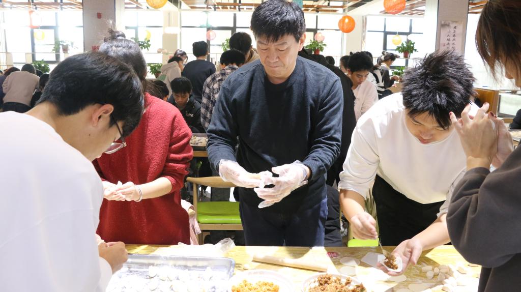 活动伊始,季中书记亲临现场,讲述冬至包饺子习俗的渊源,鼓励同学们积极投身活动,并期望大家在包饺子中收获快乐,在协作中增进友谊。同时,李宴美老师也参与到包饺子的队伍中,与同学们畅谈甚欢,亲切询问同学们近况,分享包饺子技巧,鼓励同学们积极动手实践,拉近了师生距离。