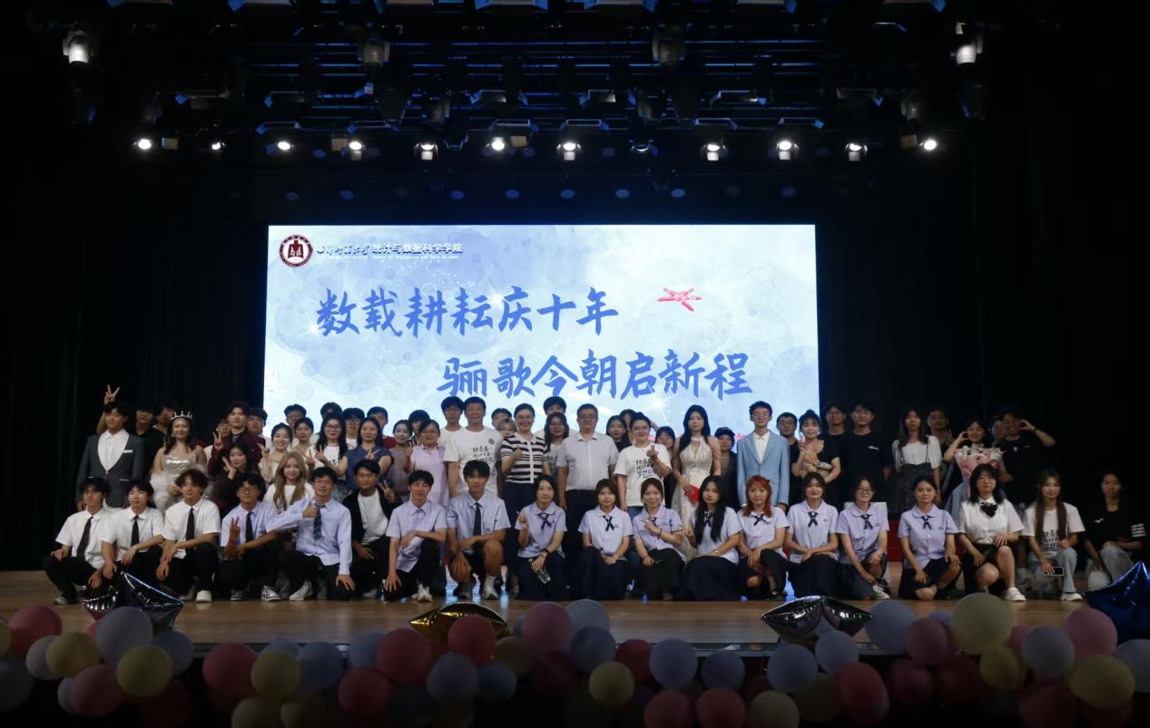十周年院庆暨毕业晚会在大学生活动中心启幕。党委书记石倩、党委副书记季中、副院长赵翔华、教授王文武、团委书记李宴美等领导老师出席,全院师生及教职工代表共同见证这场充满温情与力量的盛会。