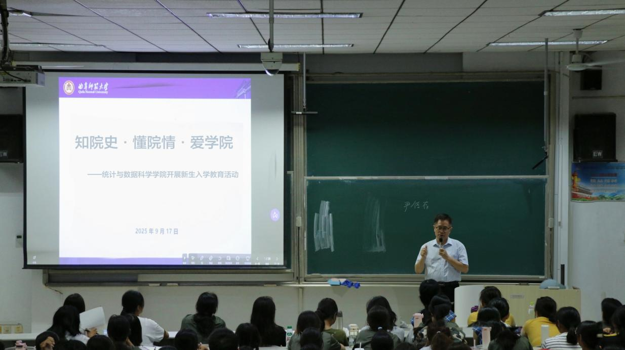 于9月17日在综合楼301举办了院史院情主题新生入学教育活动,本次会议由尹传存教授主讲,25级辅导员李宴美以及25级全体新生参加本次活动。