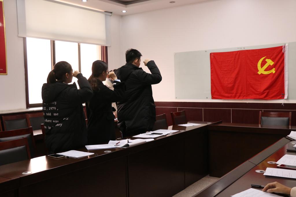 本次会议的主题是讨论预备党员韩潇、徐东俊、张雨萍三位同志转为正式党员的申请。大会分为四个议程,第一,由转正对象韩潇、徐东俊、张雨萍三位同志宣读转正申请书,主要汇报了个人在预备期一年里的学习、思想、工作等方面的内容和未来的个人努力方向;第二,支部党员讨论并进行无记名投票。第三,支部委员会宣布投票结果,全票一致通过三位同志的转正申请;第四,韩潇、徐东俊、张雨萍三位同志进行庄严的入党宣誓,表达了为共产主义奋斗终身的决心。最后,党支部书记李宴美对本次会议做出总结,希望党员转正后,不骄不躁,锐意进取,在工作、学习和生活中,时刻以党员的标准严格要求自己。