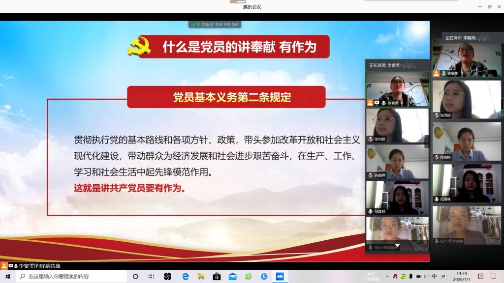 本科生党支部于7月1日通过腾讯会议在线组织举办“我是党员,我奉献”微党课学习活动。统计正妹