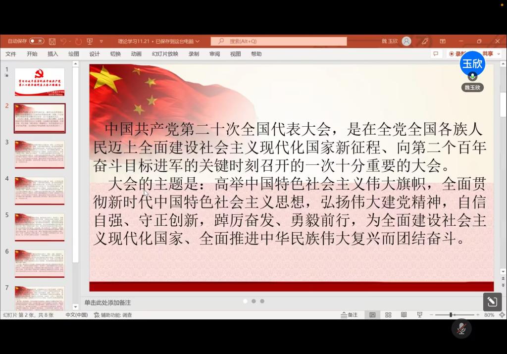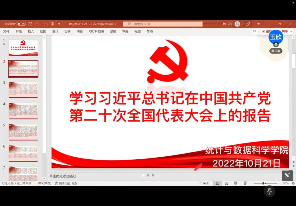 本科生党支部于11月21日晚上7:00在线上顺利举行了党的二十大报告理论学习会议。此次会议由正妹