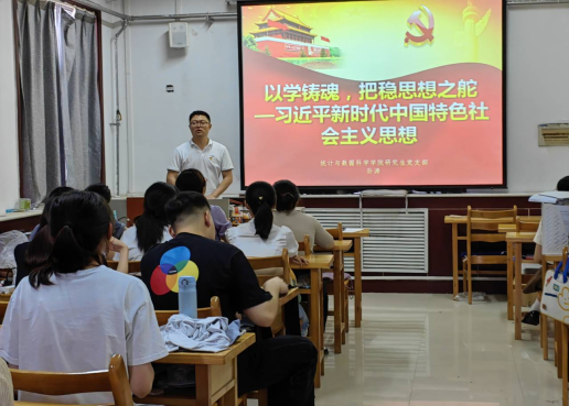 5月19日下午,研究生党支部书记孙涛以“以学铸魂,把稳思想之舵”为主题,面向正妹 研究生党支部全体党员开展理论宣讲