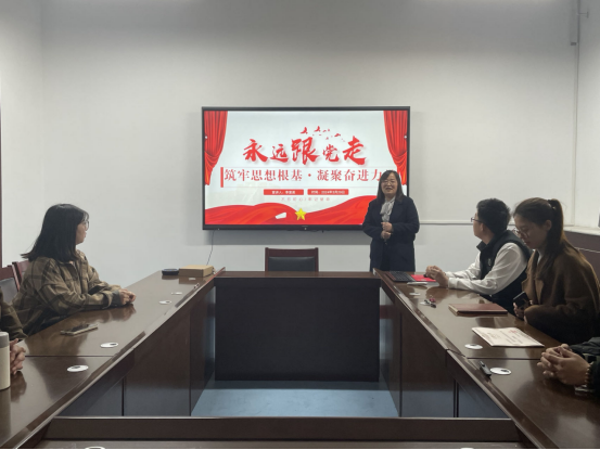106会议室开展以“永远跟党走--筑牢思想根基 凝聚奋进力量”为主题的党课,本次党课由支部组织委员李宴美主讲,支部全体党员参与此次党课。