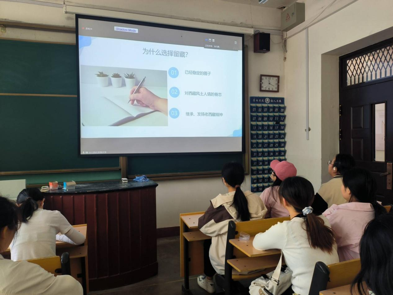 103教室组织师生观看我校“西部计划”志愿者分享会。