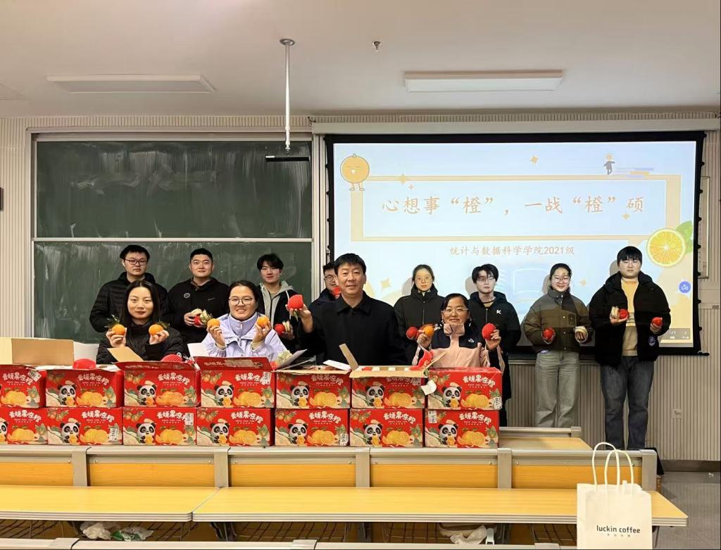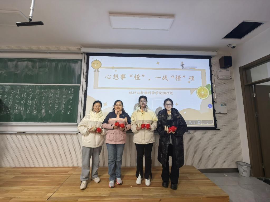 对他们的真切关怀。而后,活动正式开始,老师们不仅表达了对考研学子们的真挚祝福以及殷切期望,还告诉同学们要找到适合自己的方式来调整好心态,不必过度紧张,一定要给予自己信心,保持积极的心态去迎接考试的到来。最后,老师们为考研学子们送上了特意准备的橙子,寓意着21级考研学子能够心想事“橙”,一战“橙”硕,同时祝愿所有考研学子都可以如愿上岸。