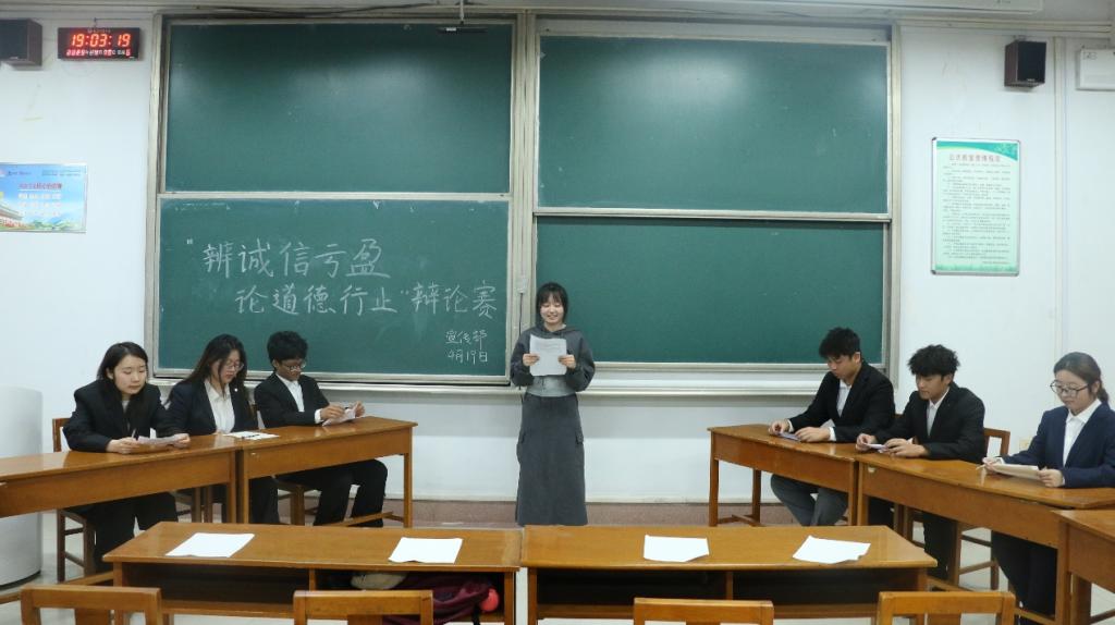 于2025年4月19日在综合楼203成功举办主题为“辩诚信盈亏,论道德行止”的辩论赛。正妹