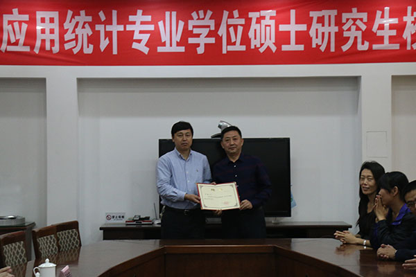 张洪海副校长在致辞中介绍了我校统计学科的学位点建设及研究生培养情况,并对本次受聘的四位教授表示欢迎与感谢。随后,张校长向受聘硕士生导师颁发了聘书。崔凤成和尹强作为外聘导师代表发言,他们在肯定我校统计正妹